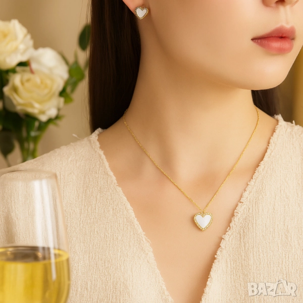 Решение: Комплект от два елемента (колие + обеци), който съчетава елегантност и практичност;