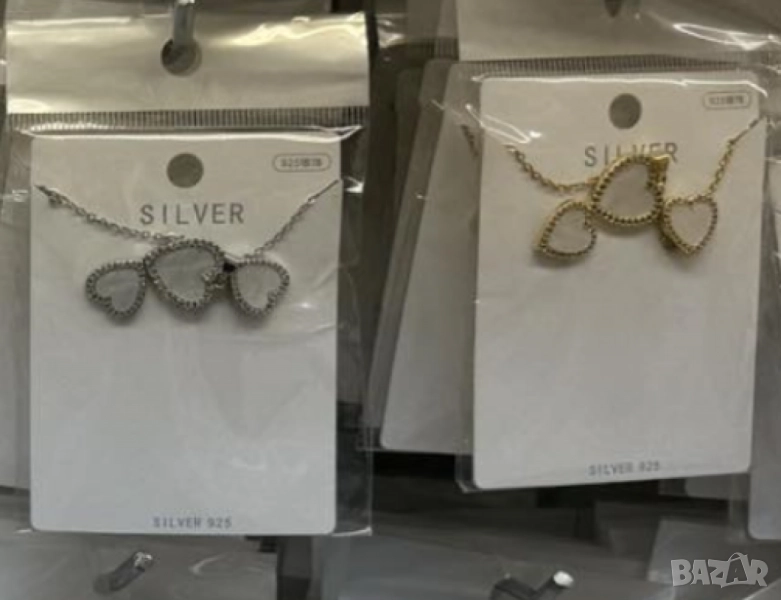 Стилен комплект бижута със сърца - Колие с обеци/ устойчив метал