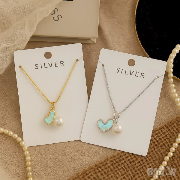 Функции: Два варианта (златисто и сребристо на цвят), сърце с опал, декоративна перла;