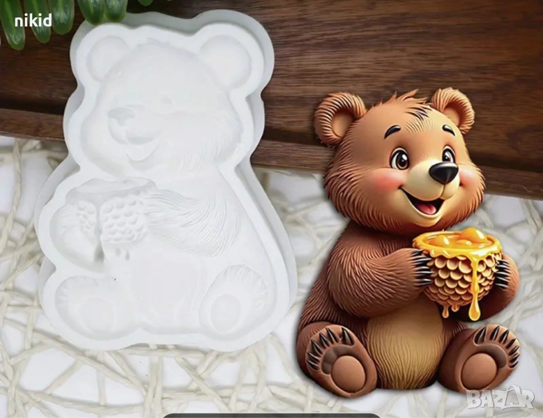 Мече с каца мед силиконов молд форма фондан шоколад декор гипс → Обява 51927603
