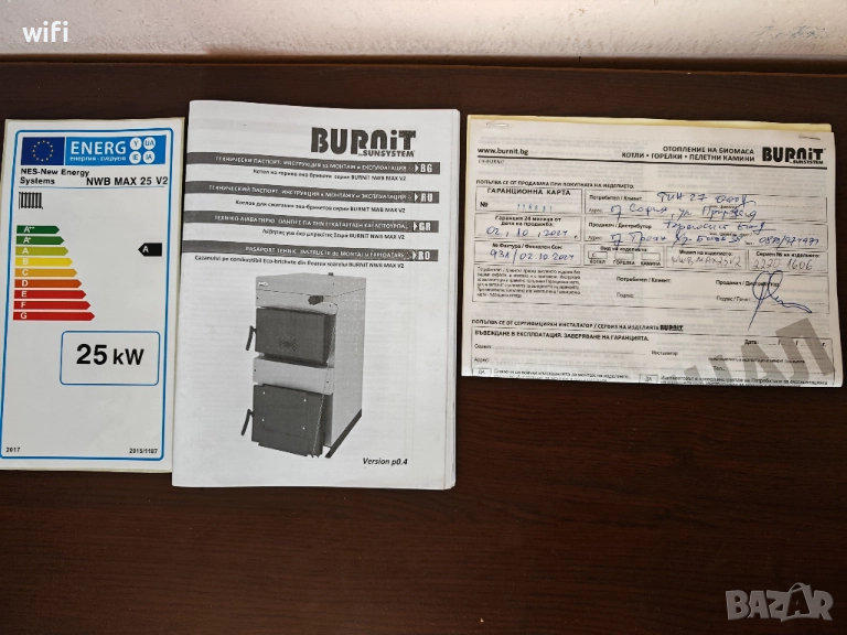 Котела е закупен и монтиран октомври 2024г, но до използването му не се стигна. Радиатора също е нов с размери 180/50 см. И мощност 3 киловата.