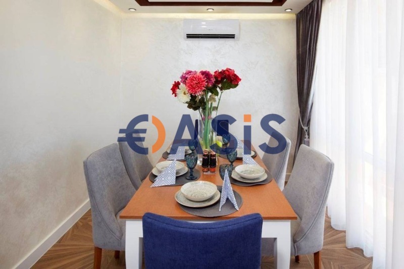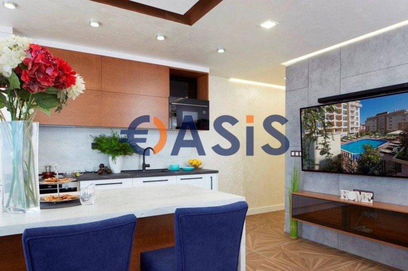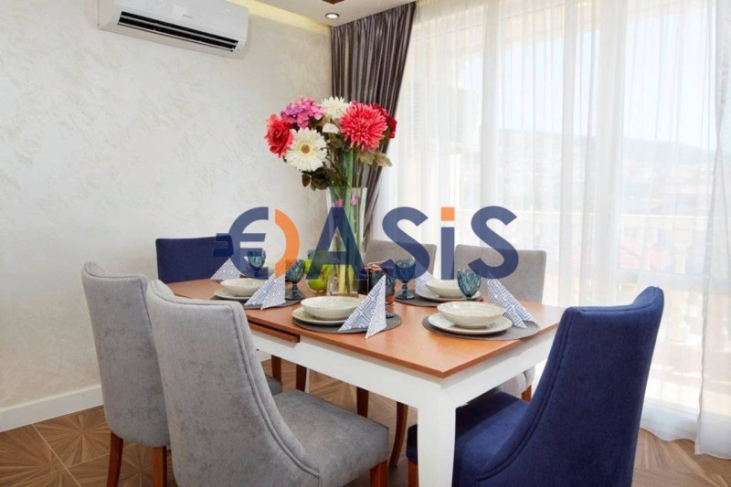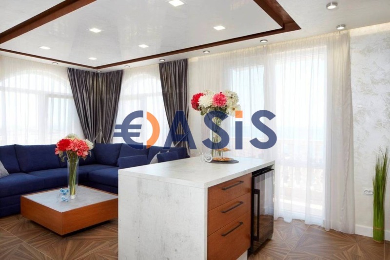 Апартаментът се състои от антре, дневна с кухненски бокс , две спални, две бани и три тераси. Изглед от терасата към вътрешния двор на комплекса и към морето .Продава се с мебели и уреди, готови за нанасяне . Всички мебели и уреди са нови, в отлично състояние .Подходящ както за лятна почивка, така и за целогодишно живеене .