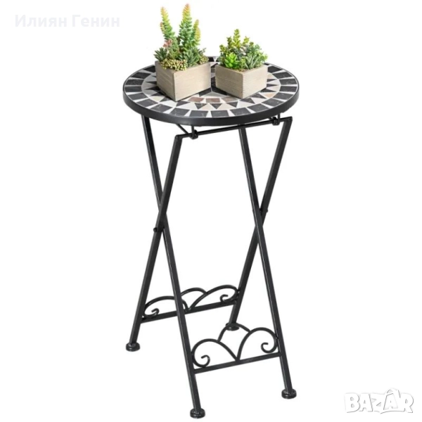 Стойка за растения Outsunny Ø36 x 67 см, сгъваема, кръгла, за балкон, каменна мозайка, градина, вътрешна, външна, многоцветна - 100.00лв.