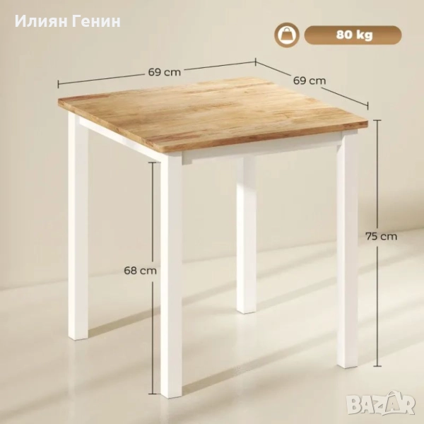 Информация за продукта маса за хранене: Общи размери: 69Ш x 69Д x 75В см. Товароносимост: 80 кг.