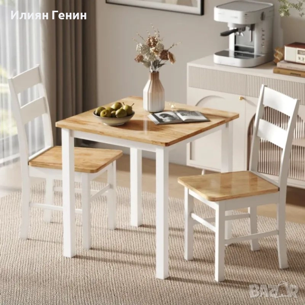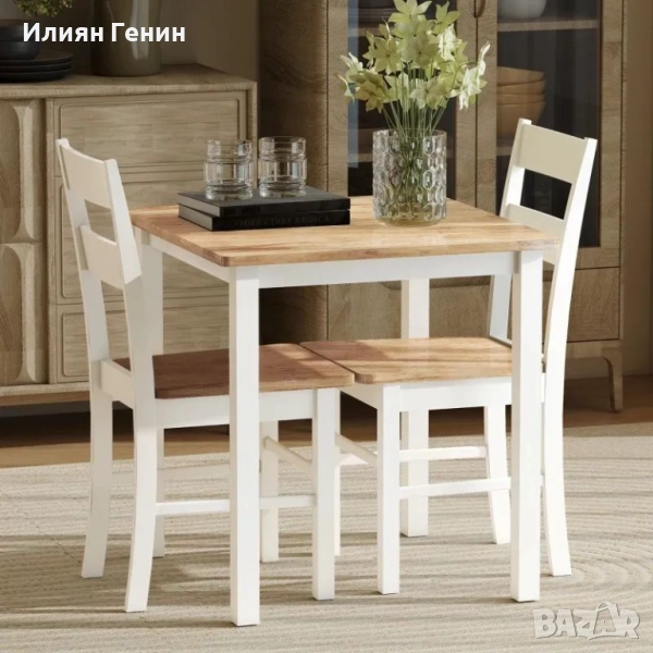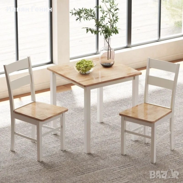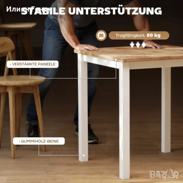 Здрава дървена конструкция: Изработена от каучуково дърво и с подсилена пола, тази маса за хранене осигурява стабилна опора за вашето семейство.