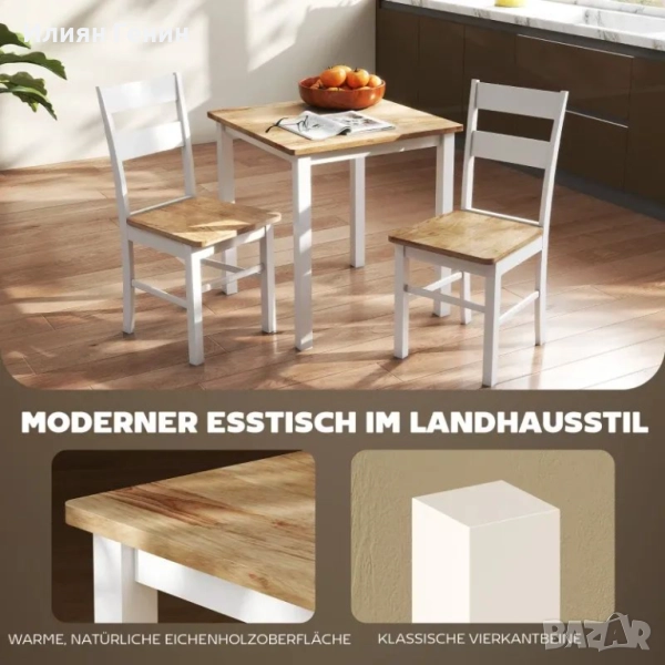 Трапезна маса HOMCOM, изработена от каучуково дърво, за до 4 души, естествено дърво - 150.00лв.