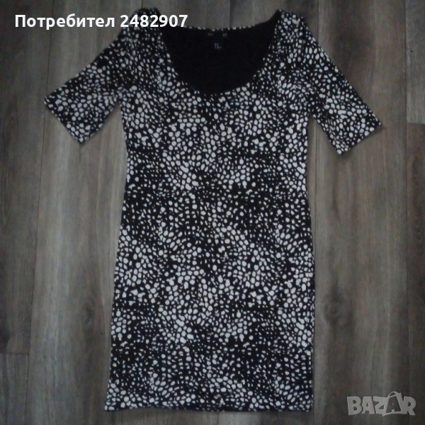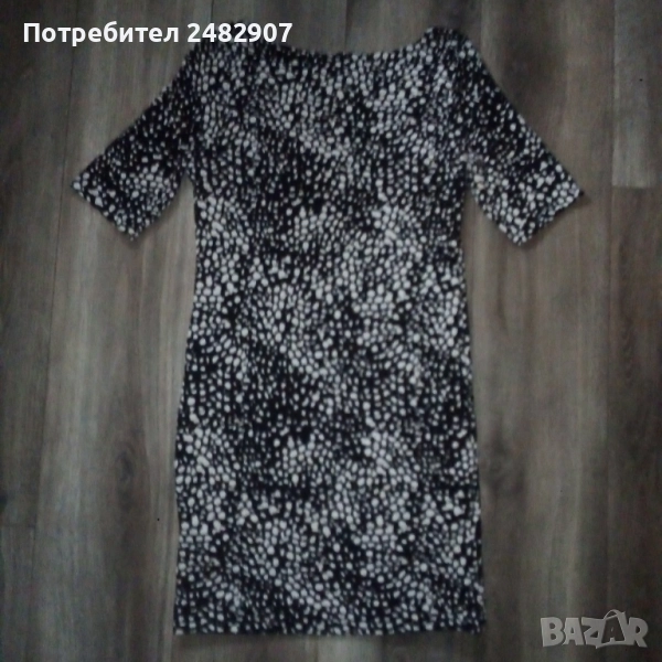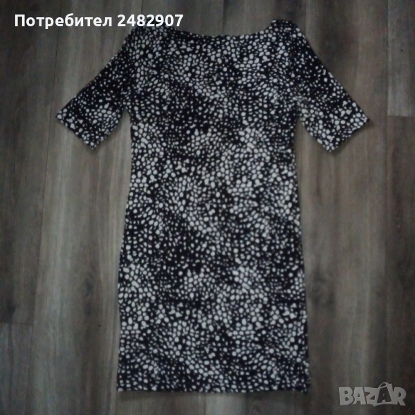 Памучна дамска рокля с подплата, размер М. Съдържа 95 % памук и 5 % еластан. Ширина в раменете - 37 см, ширина под мишниците - 43 см, ширина в долната част - 43 см, дължина от рамото до долу - 85 см, дължина на ръкава от рамото - 30 см, ширина на ръкава в долната част - 12,5 см. Много запазена, почти не е използвана, без забележки.