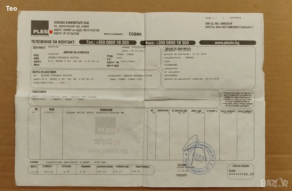 Лично предаване; Купувача