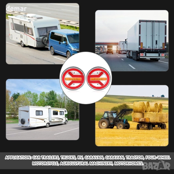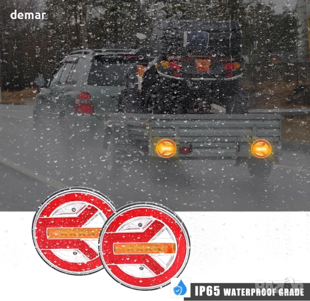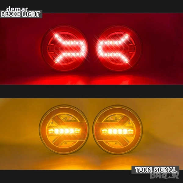 YOYOCOOL Задни LED кръгли фарове за ремарке 12V 24V, водоустойчиви - сертификат E9 (FJ5019-2 броя)