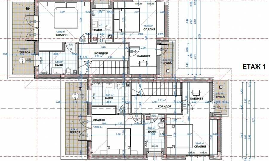 2 спални, всяка със самостоятелна баня и тоалетна;