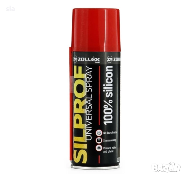 Силиконов спрей Silprof 100% Zollex - предназначен е за обработка на гумени уплътнения, пластмасови, стъклени и метални изделия с цел удължаване на експлоатационния им живот. Не съдържа разтворители, съдържащи хлор, мазнини и минерални масла. Смазката създава тънък защитен слой върху третираната повърхност, който предпазва от негативните въздействия на околната среда. Употребата му прави гумените части по-еластични, предпазва от стареене и напукване. Пластмасовите елементи не избледняват на слънце. А благодарение на водоотблъскващите си свойства, силиконовият спрей може да се използва върху метални повърхности за защита от корозия. Той ефективно елиминира скърцането и заклинването, намалява износването на триещите се повърхности. Може да се използва за обработка на ключалки, панти на врати и прозорци, люкове, водачи, пръти и други части и механизми, в които има триене. Силиконовата грес елиминира възможността за замръзване. Поради това е ефективна за обработка на ключалки на врати, люкове, капаци, багажници, чистачки и други елементи през зимния период. Притежава антистатични свойства, благодарение на които третираната повърхност остава защитена от замърсяване за дълго време. Силиконовият спрей има отлични адхезионни свойства към различни повърхности (метал, гума, пластмаса, дърво, стъкло и други материали). Благодарение на консистенцията си, той лесно прониква в труднодостъпни места, без да оставя мазни и лепкави следи. Спреят е лесен за употреба и може да се използва както за грижа за автомобила, така и в домашни условия. Има приятен аромат.