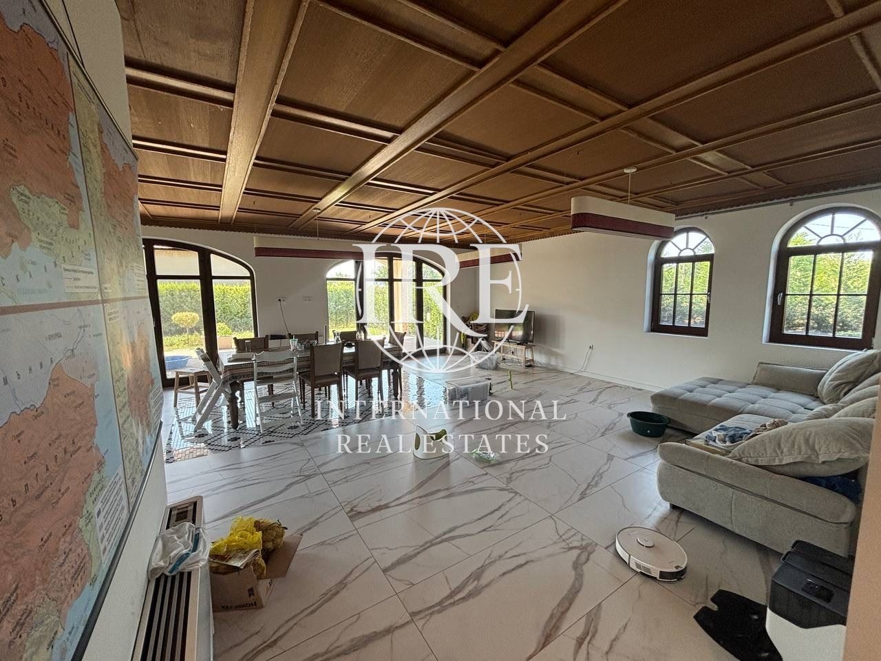 INTERNATIONAL Real Estate предлага двуетажна нова къща висок клас в с .Неофит Рилски. Селището се намира много близо до магистрала Хемус на 30 мин от гр. Варна. Къщата е монолитна топло изолирана с тухлена зидария външно. Вътрешна дебелина на преградни стени 25 см и 12см. Скатен покрив топло и хидроизолиран с керемиди. Въведена в експлоатация. Разпределение по етажи: 1ет: антре - две бани-тоалет , килер, дневен тракт с кухня, спалня, веранда. Етаж 2 - три спални и две санитарни помещения! Дограмата е дървена по поръчка, парапети от ковано желязо, дървени каси на вратите. Teрмопомпа за охлаждане и отопление. Изолация от каменна вата. Квадратура 255 кв.м върху парцел 853 кв.м с две паркоместа. За повече информация и огледи обадете се на посоченият телефон 0879 306888