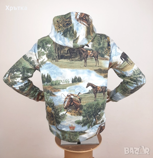Модел от лимитирана серия Equestrian Print Hoodie – вдъхновен от архивен принт от колекцията на Ralph Lauren есен 1991.