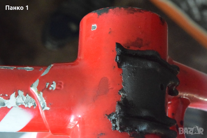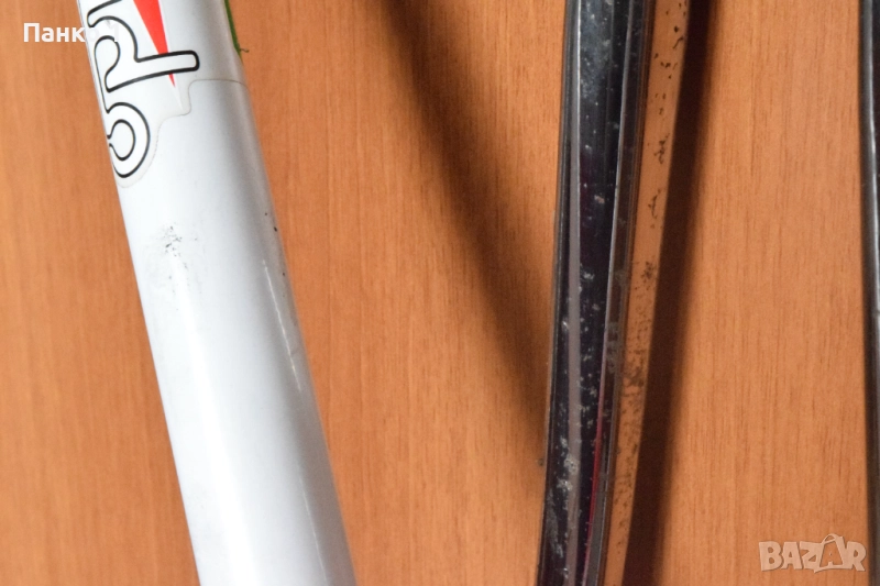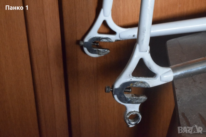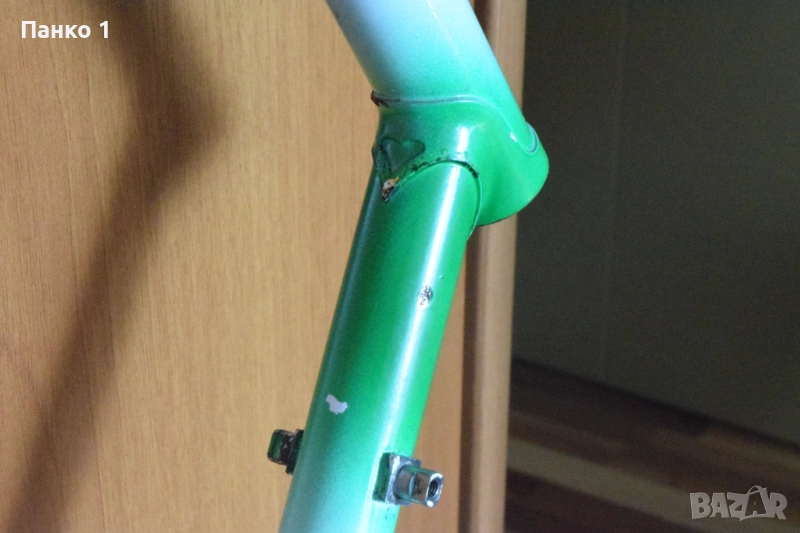 Фреймсета се намира в много прилично състояние, с оригинална боя и ковани уши. Рамката е с размери вертикална тръба 62см(център-център) и 59см хоризонтална тръба(център-център). Фрейместа е направен с тръби Columbus Aelle. Вижда се от снимкте че боята е в добро състояние, но не липсват забележки по нея, по вилката се вижда малки шупли от избила ръжда, но иначе в добро състояние. По фреймсета няма никакви ремонти, подбито или каквито и да е други нередности. Рамката ще има нужда от седалково колче с размер 26.8мм, чашки(25.4 x 24F) и средно движение(36x24) от италиански тип, като за вилковите чашки и Английски стандарт би станал. Разтоянието между задните уши е 126мм.