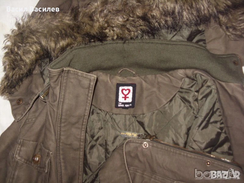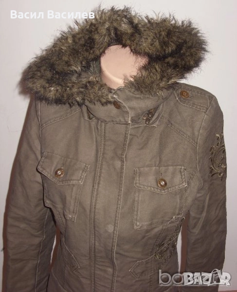 Cool Cat дамско зимно палто милитъри зелено с качулка бродерия 100% памук → Обява 51932394