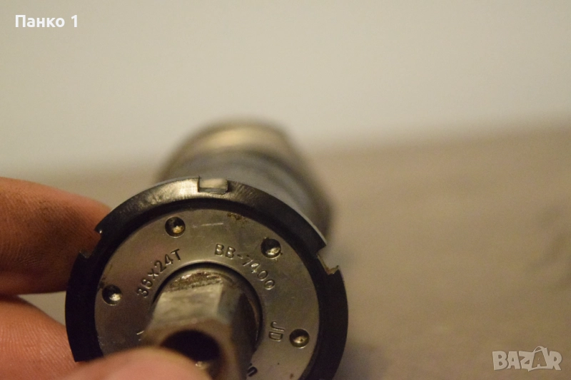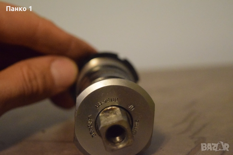 Средното се намира в перфектно състояние, без никакви забележки по оста или чашките. Оста е дълга 112мм и италиански стандарт резби 36x24 . Точният модел е 7400