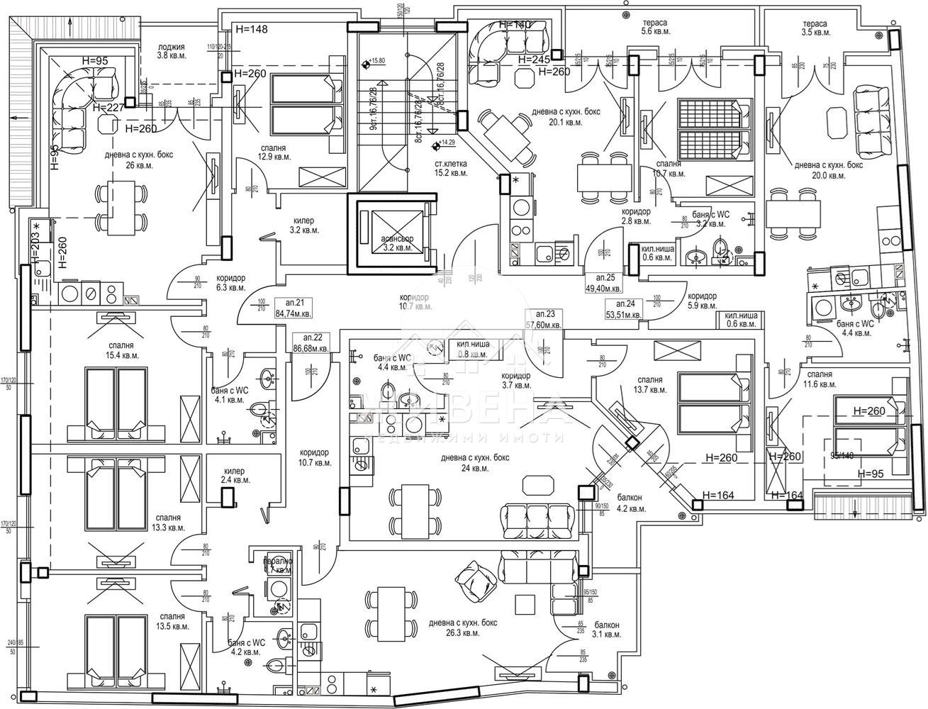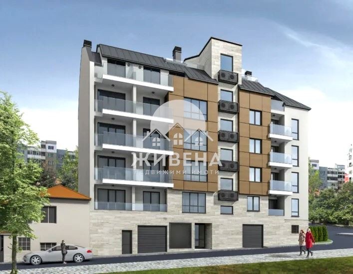 Агенция Живена предлага за продажба тристаен апартамент в малка жилищна сграда, в строеж, разположена на отлично място в Цветен квартал. Имотът е разположен на 6-ти етаж от 8, с обща площ - 96.82 кв.м, ЗП: 84.74 кв.м, с изложение: изток/североизток. Състои се от дневна с кухненски бокс (26 кв.м), 2 спални (15.4 и 12.9 кв.м), баня с тоалетна (4.1 кв.м), килер (3.2 кв.м), коридор (6.3 кв.м) и лоджия (3.8 кв.м). Издава се в степен на завършеност по БДС: вътрешни стени - тухла с гипсова мазилка, тавани гипсокартон, под на стаи - циментова замазка, баня - тоалет: под циментова замазка, стени вароциментова мазилка, ел. инсталация: завършена напълно до ключове, контакти, оптичен кабел до апартамент; В и К инсталации: завършени до тапа; изграждане на тръбни връзки за монтаж на климатици, на определени по архитектура места; външна врата блиндирана с облечена декоративна каса; прозорци: висококачествена PVC дограма - 7 камерна с тройни стъклопакети, 6 мм четири сезона/ 4 мм бяло флоатно стъкло/ 4 мм К. Възможност за покупка на открити и закрити паркоместа на цени от 25 000 евро. Сградата е с модерна визия и се състои от 7 жилищни етажа и 1 подземно ниво (закрит паркинг). Започнат строеж - през март 2025, очакван Акт 16 - през лятото на 2027 г. Общи части на сградата: подови настилки и стъпала от гранитогрес или гранит; стени - декоративна мазилка; асансьор - ORONA; паркинг - шлайфан бетон на под; фасада - комбинация от мазилка с камък, HPL и керамика; покрив - хидро и топлоизолация. В сградата са налични и други тристайни апартаменти и един четиристаен мезонет. Предлагат се определени схеми на плащане след оставен депозит. Агенция Живена извършва необходимите проверки на имота, който сте избрали, организира всички етапи на сделката до нейното финализиране. Оказваме съдействие за отпускане на банков кредит. Оферта 7479