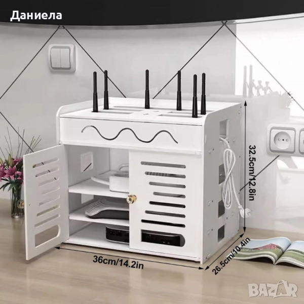 Органайзер шкаф за Wi-Fi рутер и кабели – 3 нива, бял дизайн