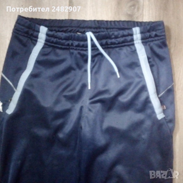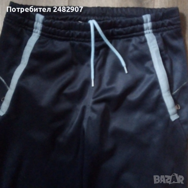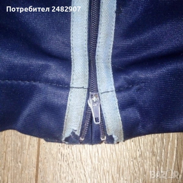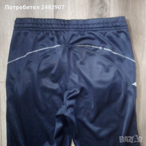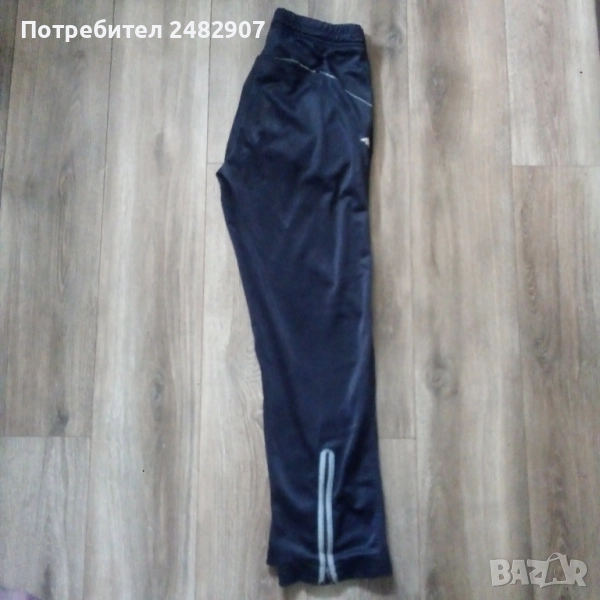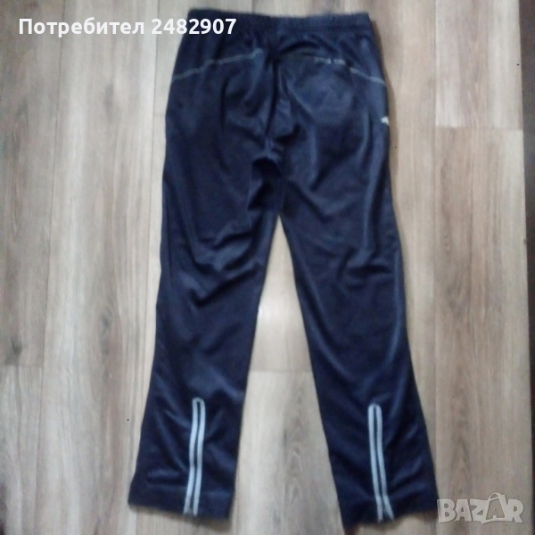 Мъжки спортно долнище - ретро, размер М. Ширина в талията - 40 см, дължина от талията до чатала - 28 см, дължина от талията до долу - 103 см, ширина на крачола в долната част - 21 см. Запазено, с нормални следи от износване, с два джоба, връзки и ципове в долната част на крачолите отзад.