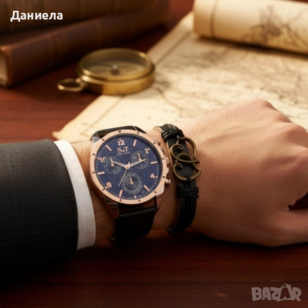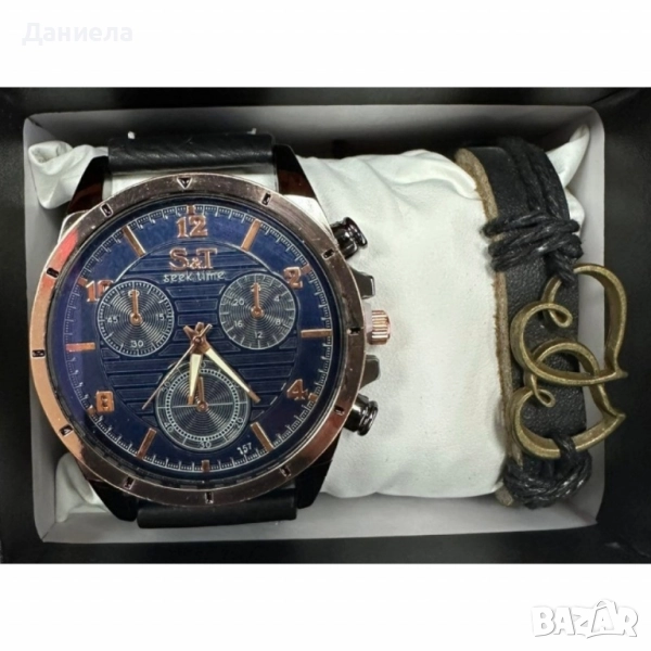 Мъжки часовник S&T Seek Time с кожена гривна – подаръчен комплект