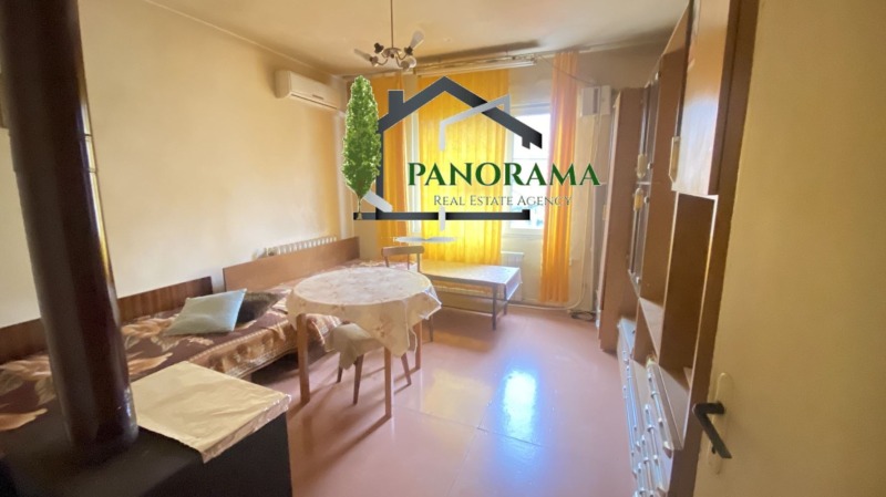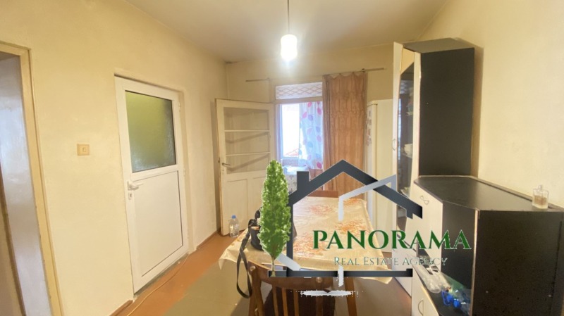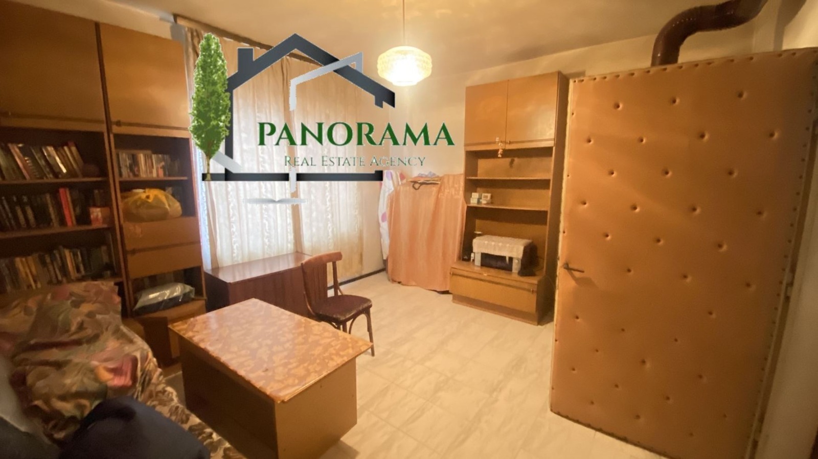 Етаж от двуетажна тухлена къща на плоча, с площ от 80кв.м, в квартал Военно училище. Разпределен е на кухня, трапезария, хол, две спални, тераса, баня и тоалетна в едно помещение. Към жилището се включват целият таван с площ 80 кв.м., сутеренно помещение от 20 кв.м. със санитарен възел, както и половината идеална част от двор 558 кв.м. със стопанска постройка. Изложението е изток/юг, което осигурява много светлина и уют. Имотът е със самостоятелен вход.