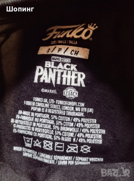 - Тениска Marvel Черната пантера - унисекс, изработена от органичен памук, размер С/M, не е умалена, гръдна обиколка около 96 см, дължина 67 см.