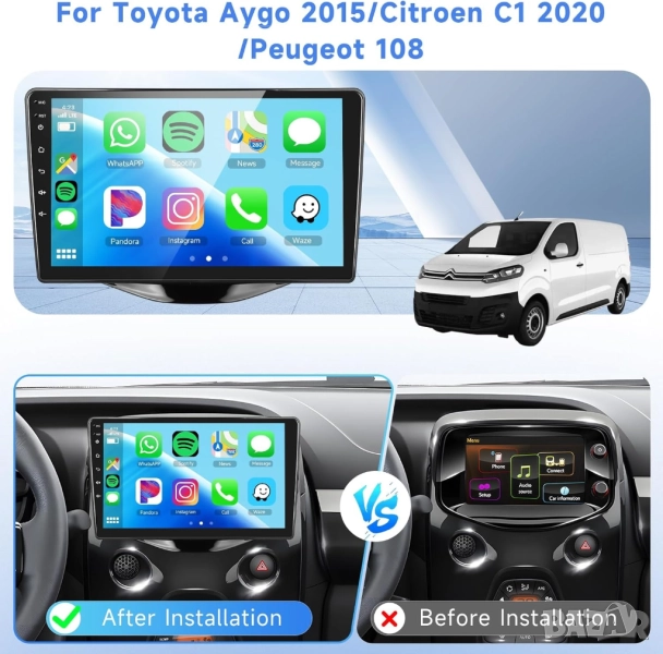 Мултимедия, за Toyota Aygo, Citroen C1, Peugeot 108, Андроид, навигация, Двоен 2DIN, плеър, Android