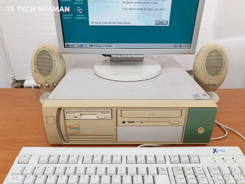 Продавам FUJITSU SIEMENS i815e ретро компютър с инсталиран Windows 98SE, MS-Office 97 и 24 класически игри.