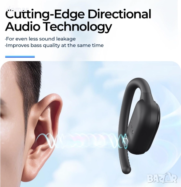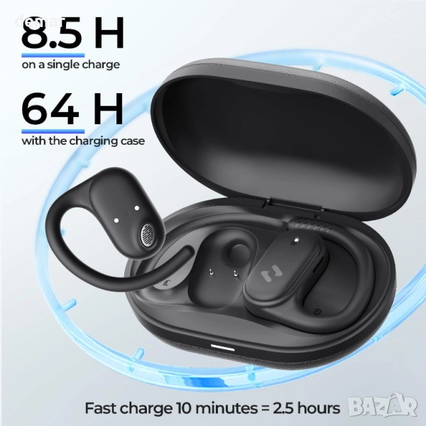 Тези леки като перце слушалки с отворени уши тежат само 7,9 грама и разполагат с гъвкав силиконов дизайн Air-Ear-Hook за сигурно прилягане без натиск, подходящи за носене през целия ден. С Bluetooth 5.4 те предлагат бързо сдвояване, стабилни връзки до 15 метра и ниска латентност, докато технологията за насочен звук намалява изтичането на звук. Дизайнът с отворени уши гарантира, че ще сте в течение на трафика и околностите, което ги прави идеални за упражнения на открито и пътуване до работа. Едно зареждане осигурява 10 часа време за възпроизвеждане, което може да се удължи до 64 часа с компактния калъф за зареждане, а 5-минутно бързо зареждане добавя още един час. Захранвани от 14,2 мм драйвери, те осигуряват чисти високи честоти, дълбок бас и ясен звук, без да блокират ушния канал, съчетавайки комфорт, безопасност и завладяващ звук за активен начин на живот.