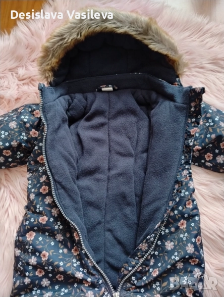 От вътрешната страна е подплатен с полар, много топъл, а от външната е водоотблъскваща материя със сваляща се качулка с изкуствен косъм. Закопчава се с цип отпред с предпазител за брадичката, ластик на гърба и подсилени участъци на гърба и коленете. Малък джоб с цип в горната част, покрити ластики на маншетите и подгъвите и подсилена еластична лента под краката. Светлоотразителни детайли. Подплатен.