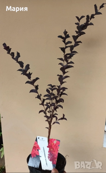 Предлагам рядък сорт Индийски люляк - lagerstroemia Black Diamond best red с черни листа и кърваво-червен цвят.Напълно студоустойчив.Снимките са реални на предлаганото от мен растение/в момента е без цвят.Последните две снимки са за пример как ще изглежда растението след 2-4 години.Може да го оставите във формата на храст или да го оформите като дръвче.Ако стеблото бъде отчупено или изсъхне,корена не умира и на пролет с пълна сила избива ново стебло.Бързорастящо.Цъфти обилно,когато е засадено на пълно слънце,но почвата да не се оставя да засъхне,обича много вода.