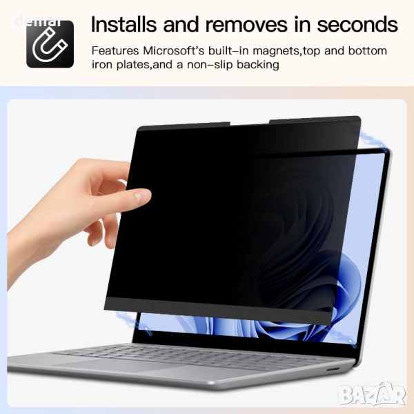 Този 13,5-инчов магнитен екран за поверителност е проектиран за пълна съвместимост с лаптопи Microsoft Surface (2017–2024) и се закрепва мигновено без лепило, използвайки автоматично подравняващи се магнити и технология за нано-запечатване. Той защитава чувствителна информация с 30° ъгъл на видимост против надничане, като същевременно поддържа плавна реакция при допир за ежедневна употреба в офиси, кафенета или споделени пространства. Екранът също така намалява напрежението в очите, като блокира до 95% от синята светлина и UV лъчите, а издръжливият му устойчив на надраскване PET слой предпазва дисплея на лаптопа от износване и повреди.