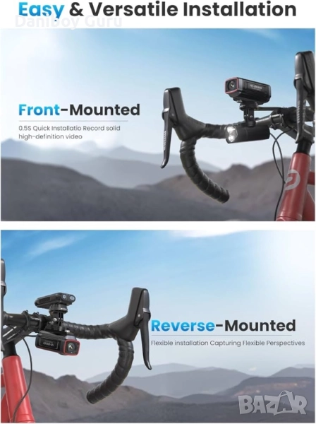 【Безжично удобство и специално приложение】 Можете да надстроите устройството си чрез OTA през Wi-Fi, без SD карти или компютър. Нашата велосипедна камера има 2.4GHz/5GHz двубандов Wi-Fi за връзка със смартфон. Благодарение на тази Wi-Fi връзка, не са необходими мръсни кабели на велосипеда, което позволява плавна работа, преглед в реално време, възпроизвеждане на видео и лесно споделяне на преживявания по време на колоездене.