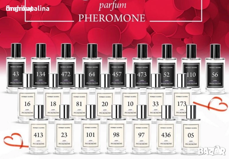 Парфюми с феромони - тайното оръжие! Ефирни, безароматни съставки, които увеличават трайността на парфюма. Използвай ги винаги, когато искаш да направиш добро впечатление!