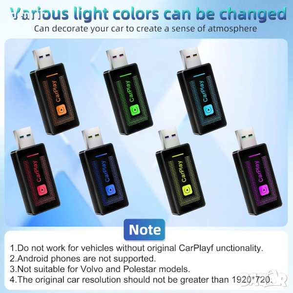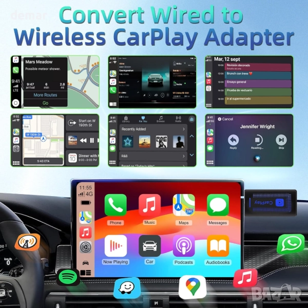 Този безжичен CarPlay адаптер мигновено преобразува кабелния CarPlay в безжичен, което ви позволява да използвате навигация, музика, разговори и Siri, без да докосвате телефона си. Настройката отнема само няколко минути с Bluetooth сдвояване и се свързва автоматично всеки път, когато стартирате колата. Обновеният чипсет 2025 осигурява по-бързо сдвояване, стабилна производителност и бърза реакция, докато компактният му дизайн остава дискретен в конзолата. Здравите плетени найлонови кабели са разтегателни, прибиращи се и устойчиви на износване, с персонализирано осветление, което подобрява атмосферата в автомобила. Работи с повечето автомобили от 2016 г. нататък, които поддържат кабелен CarPlay (с изключение на портретни екрани Volvo/Polestar) и iOS устройства от версия 10 нагоре.
