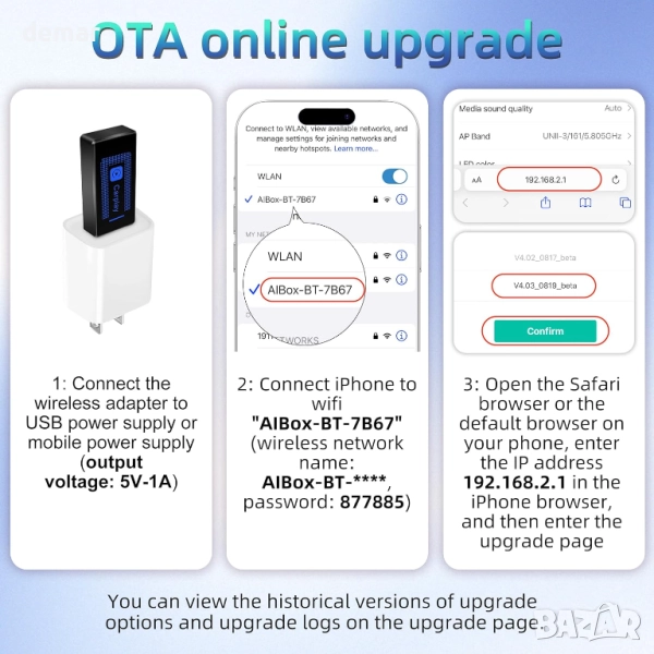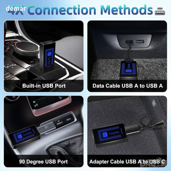 Безжичен CarPlay адаптер (2025) за iPhone - Plug & Play USB конвертор, автомобили 2016+ и iOS 10+