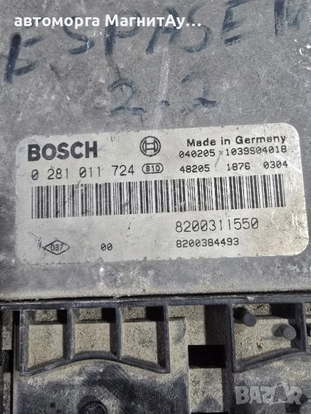 ECU компютър RENAULT ESPACE 2.2 DCI BOSCH 0281011724 / 8200311550 / 8200384493 / 1039S04018, снимка 1 - Части - 51935411 ECU компютър RENAULT ESPACE 2.2 DCI BOSCH 0281011724 / 8200311550 / 8200384493 / 1039S04018, снимка 2 - Части - 51935411 1/2