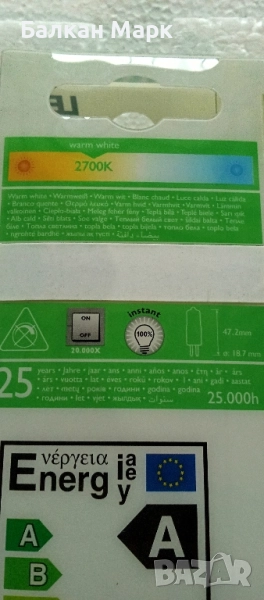 LED крушка / крушки Philips MyVision G4, 2.5W (10W), 100lm, топла светлина – нови, с опаковка