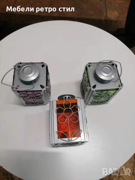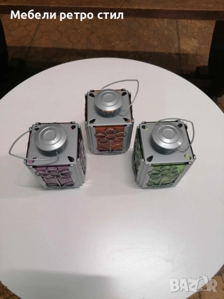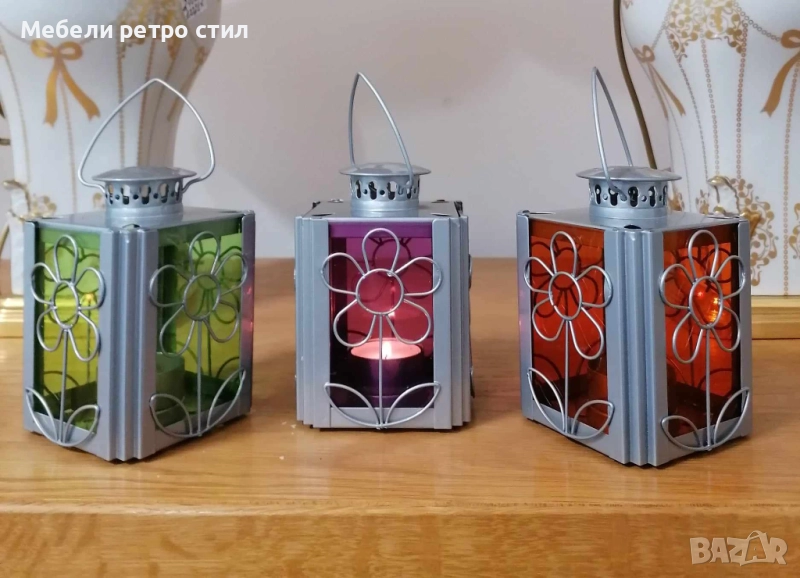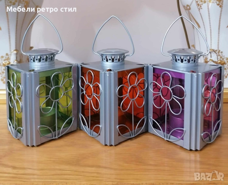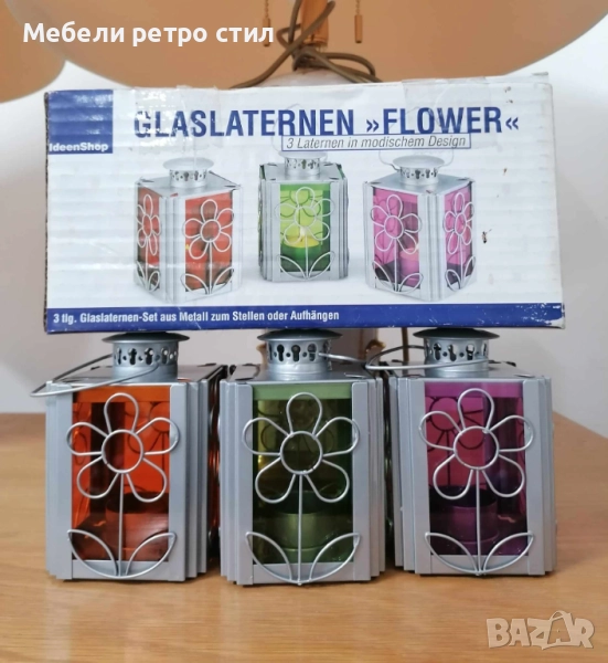 Комплект красиви декоративни фенери''Glaslaternen / Flower/ с флорален дизайн от стъкло и метал. → Обява 51935697