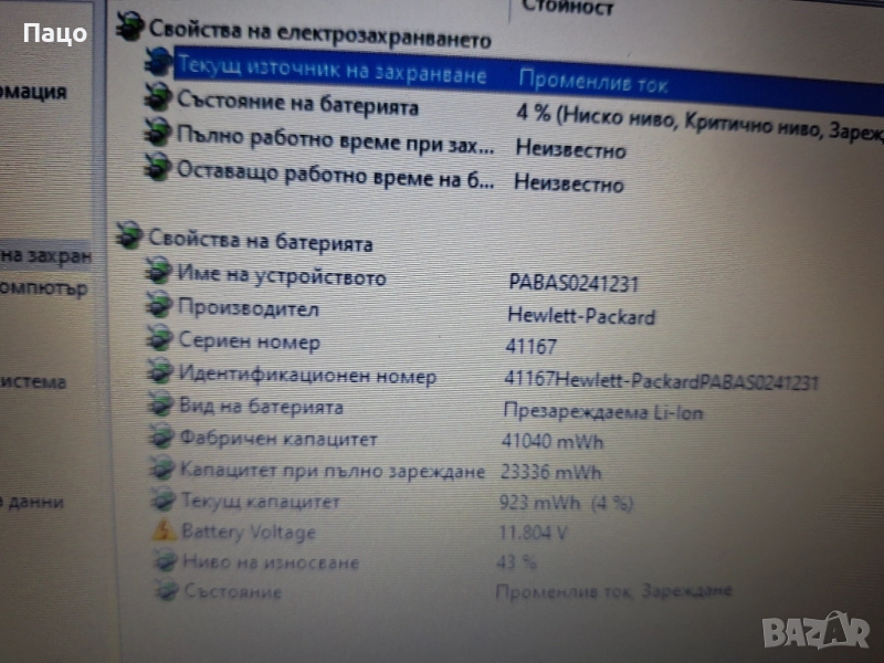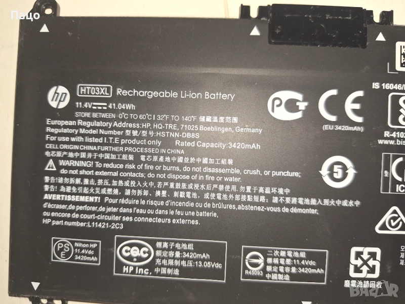 HP Pavilion HT03XL /Батерия за лаптоп, съвместима с HP Pavilion 14-CE0025TU 14-CE0034TX 15-CS0037T 250 255 G7 HT03XL HSTNN-LB8L/Тествана е,има снимки на 43 процента износване само затова е такава и цената и,символична с опция преглед и тест е/