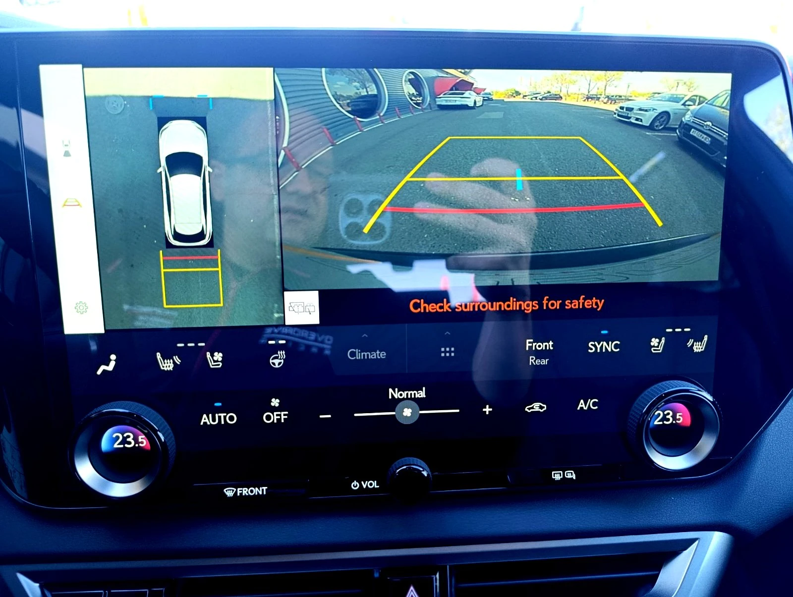 Цвят графитно черно - черно Sumi Панорамен стъклен покрив с електрическо управление Задвижване на всички колела Алармена система против кражба с наблюдение на интериора Алармена система против кражба със защита от теглене ВЪНШНО ОБОРУДВАНE Изпускателна система със скрит ауспух Дръжки на вратите с вградено осветление за достъп 21-инчови алуминиеви джанти, боядисани в тъмно сиво, многолъчев дизайн с гуми 235/50R21 Капаци на външните огледала, боядисани в цвета на каросерията Интелигентен асистент за паркиране Lexus: предни и задни сензори за паркиране (4) с функция за аварийно спиране Чистачките на предното стъкло, активирани от сензор за дъжд Динамично регулиране на обхвата на фаровете Мулти-LED фарове Прагове от черна пластмаса Светлини за завиване Външни огледала от страната на водача с автоматично затъмняване Предни фарове за мъгла с LED технология Заряден интерфейс AC тип 2/Mennekes с капацитет на зареждане 6, 6 kW Външните огледала се завъртат автоматично надясно (функция за акустично осветяване на бордюра) Акустично остъкляване за предните и задните странични прозорци Предно стъкло и предни странични прозорци с водоотблъскващо покритие Светлинен сензор Рейки на покрива в алуминиев цвят Електрически регулируеми външни огледала Лайстни на калниците, боядисани в цвета на каросерията Автоматично сгъваеми външни огледала Предни мигачи LED Отопляеми външни огледала Дневни светлини LED Задни фарове за мъгла LED Задни светлини с LED технология Спойлер на покрива в цвета на каросерията Система за почистване на фаровете Мигачи, интегрирани във външните огледала Тонирани стъкла: подобрено тониране на задните странични стъкла и задното стъкло ИНТЕРИОР И КОМФОРТ Велурена тапицерия на вратите Регулиране на седалката на водача: 10-посочно електрическо регулиране Предна централна конзола с вградено отделение за съхранение Отопляема опора за чистачките на предното стъкло Волан: 3-лъчев волан от дърво/кожа Отопляеми седалки за водача и пътника отпред Лумбална опора за пътника отпред, регулируема в 4 посоки Лостчета за превключване, интегрирани във волана Седалката на пътника се регулира от седалката на водача Автоматично заключване на вратите, зависимо от скоростта 12V контакт за аксесоари Автоматичен климатик с автоматична рециркулация Автоматичен климатик с индивидуално управление за водача, пътника отпред и пътниците отзад Дървени акценти в предната централна конзола Lexus Smart Key Комфортно влизане: Седалката на водача и воланът се прибират за по-лесно влизане и излизане Поставка за крака за водача Oтопляем волан Поставка за чаши отзад Електрически управлявана задна врата Табло с инструменти, покрито със синтетична кожа Tahara Дигитално огледало за обратно виждане Тапицерия на седалките от полуанилинова кожа Поставка за чаши отпред Осветление на багажника Регулиране на дължината на седалката на пътника отпред Регулиране на седалката на пътника отпред: електрическо регулиране в 10 посоки Автоматичен климатик с филтър за полени и твърди частици Индикатор за хибридна система Предни облегалки за глава с регулиране на височината и наклона Електромеханично отваряне на вратата, E-Latch Комфортно влизане Easy-Entry: Седалката на водача се прибира и сваля за по-лесно влизане и излизане Осветление на жабката (LED) Електрически автоматичен климатик с nanoe йонизац