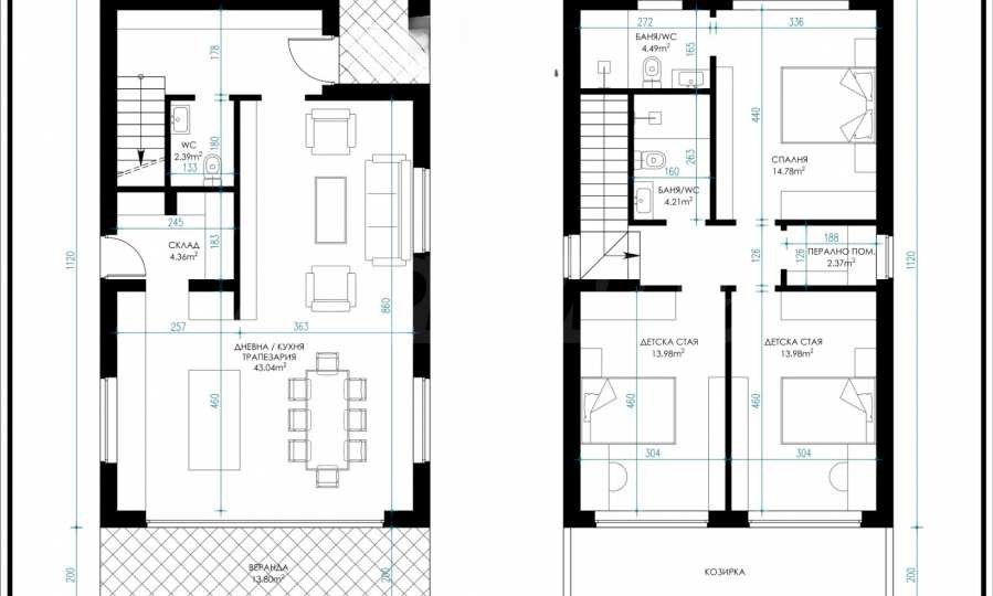 Всеки имот е с РЗП 183 кв.м, проектиран с функционално разпределение на пространствата, осигуряващо максимален комфорт и удобство: