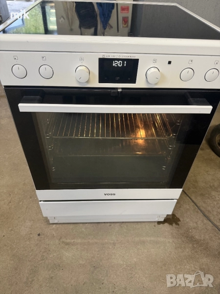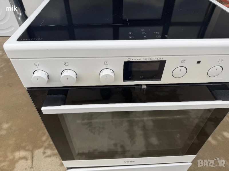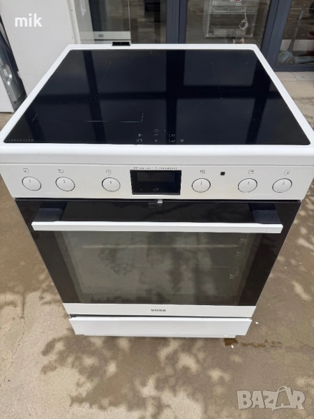Печка с керамичен плот Восс Електролукс! Печката е индукционна! Като нова! С електронен дисплей за показване на температурата. Много здрав и качествен модел. С пуш бутони! И с телескопични водачи! Размери 85-60-60. Печката има и шкафче за съхранение на тавите. Фурната е с вентилатор за обдухване на въздуха. Без ръжди. Перфектно уплътнение. Oборудвана с оригинална решетка и тава. С фукция готвене на пара!