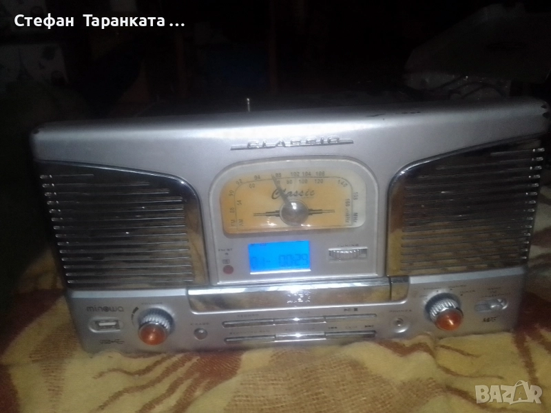 Грамофон, радио тунер, CD player, усилвател и вградени говорители в едно → Обява 51936533