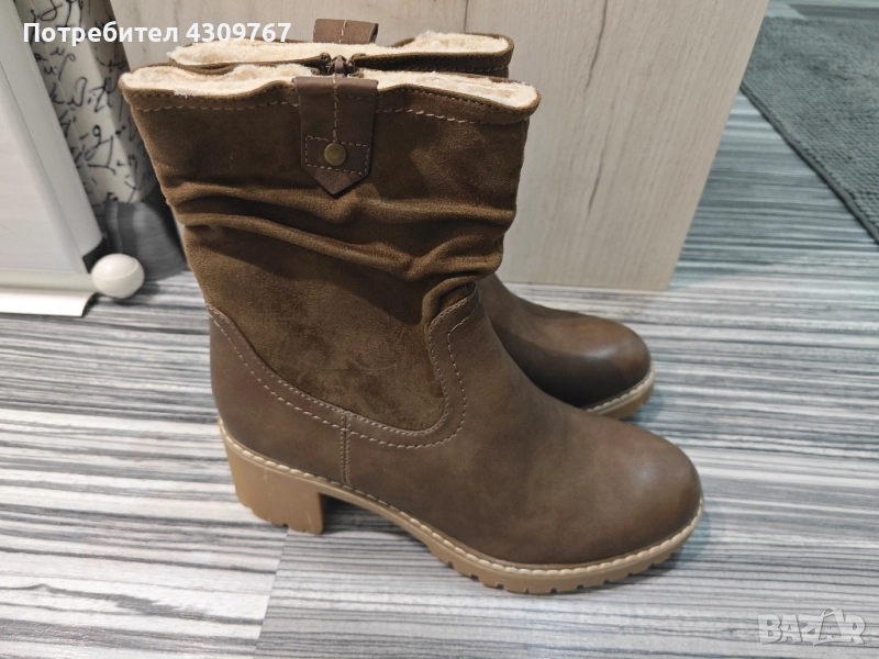 Дамски боти Xcess в кафяв цвят. Ток с височина 5,5см. Материал велур+изкуствена кожа, вътрешна страна вата. Номер 38 стелка 25см.