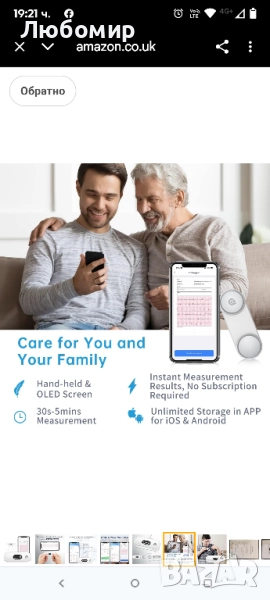 CheckMe DuoEK-S домашен ЕКГ монитор, безжичен Bluetooth сърдечен монитор с аналитичен отчет, 0.96-инчов OLED екран, 30s - 5 мин, монитор за пулс, приложение за iOS/Android.Лесно измерване: Дизайн без превключвател за измервания с натискане на бутон. Идентифицира потенциални проблеми за по-малко от 30 секунди. Показване на ЕКГ в реално време на OLED екрана, преглед на резултатите от анализа в приложението.