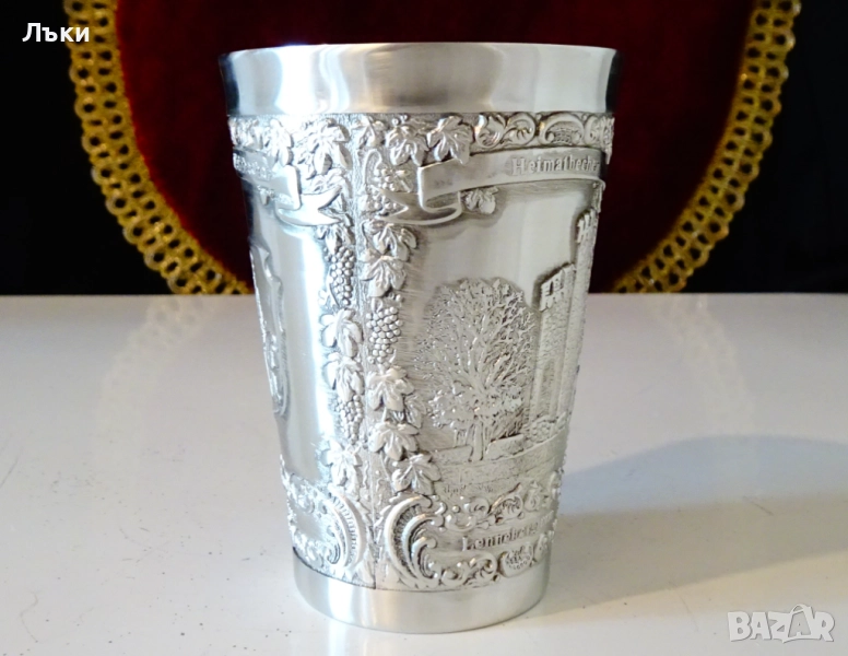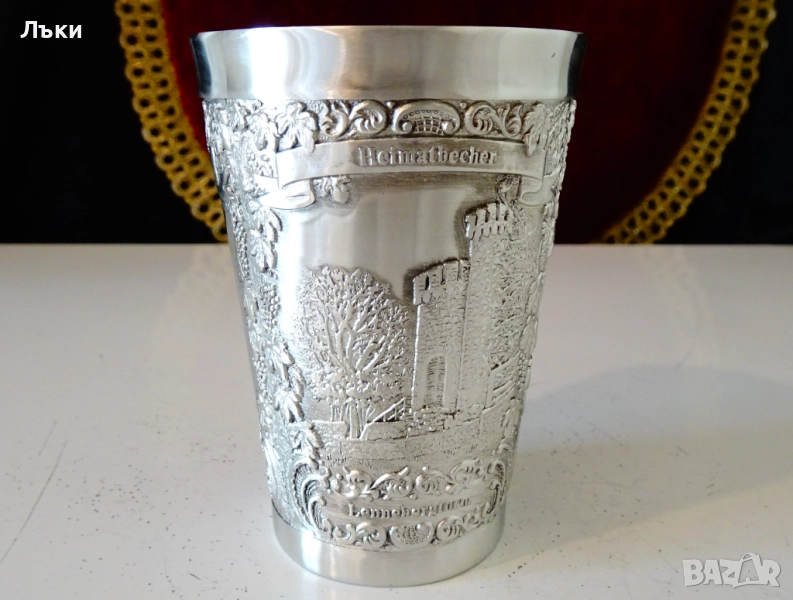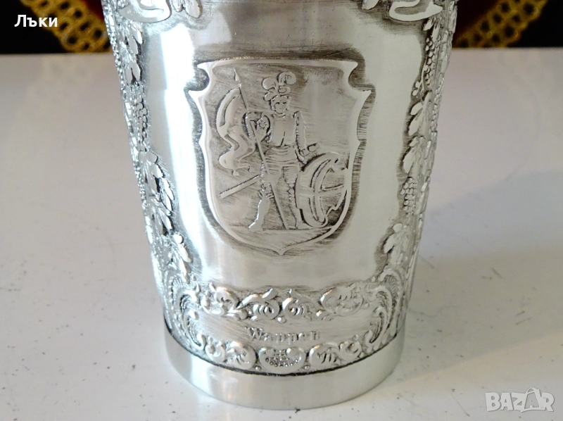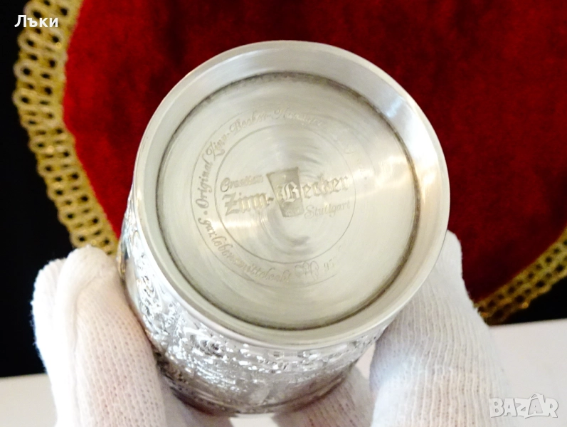 Старинна немска калаена чаша за вино,майсторска ръчна
