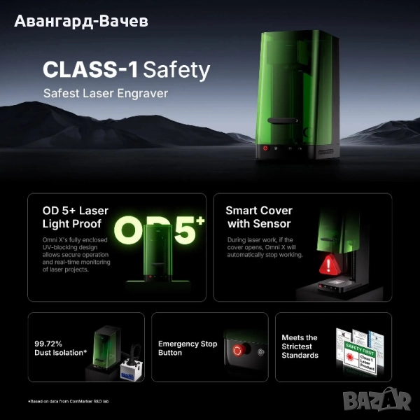 С вграден лазерен защитен щит и интелигентен сензор за капак, Omni X задава новия стандарт като най-безопасната UV лазерна гравираща система в света.