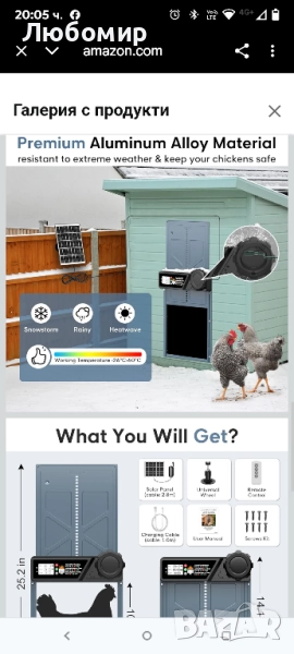 🏅 [Издръжлива конструкция от алуминиева сплав] Изработена от висококачествена алуминиева сплав и ABS материали, тази автоматична врата за кокошки е устойчива на атмосферни влияния и е създадена да издържи на температури от -26°C до 60°C. Пазете кокошките си в безопасност при всякакви метеорологични условия.