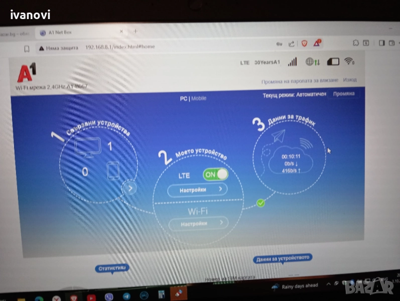 Изправен с дребни следи от премятане по шкафовете. Работи само с карти на А1! Идва настроен и готов за работа, само да се сложи SIM.